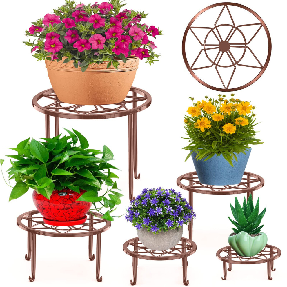 Jeackcelle 5 Pack Metal Plant Stands, Heavy Duty Flower Pot Stands for Multiple Plants, Anti-Rust Iron Shelf, Decoration Racks for Home Indoor and Outdoor (Bronze)