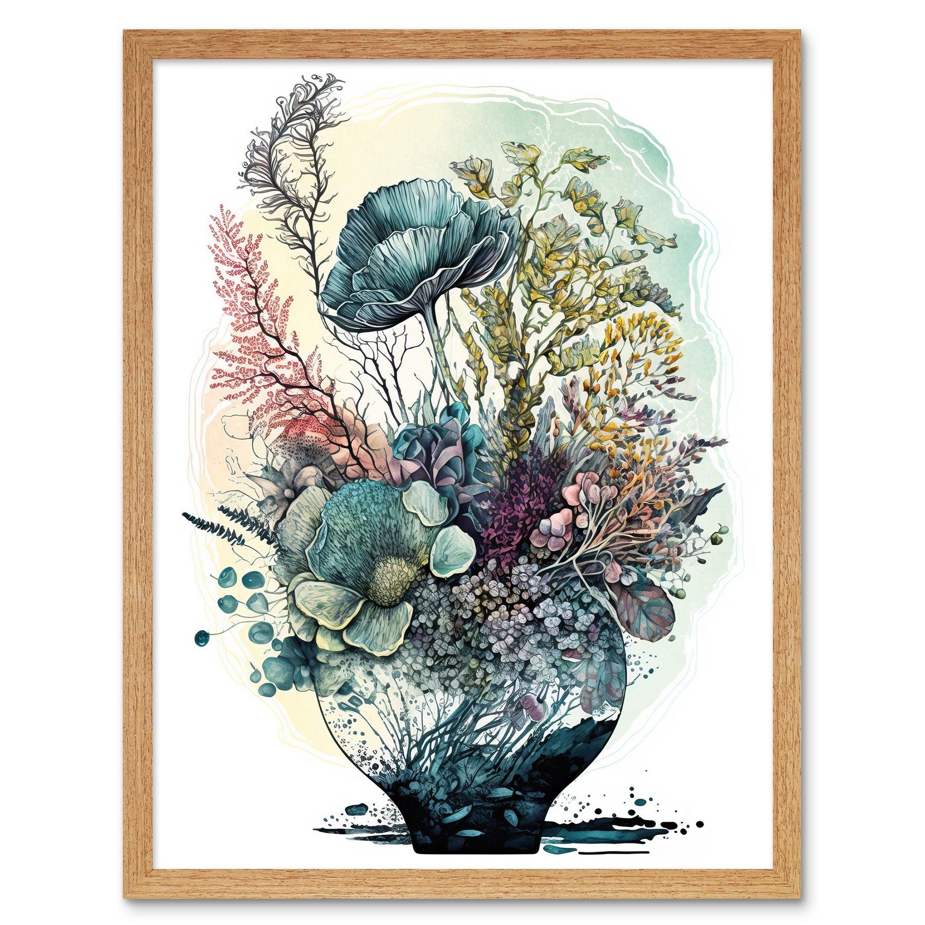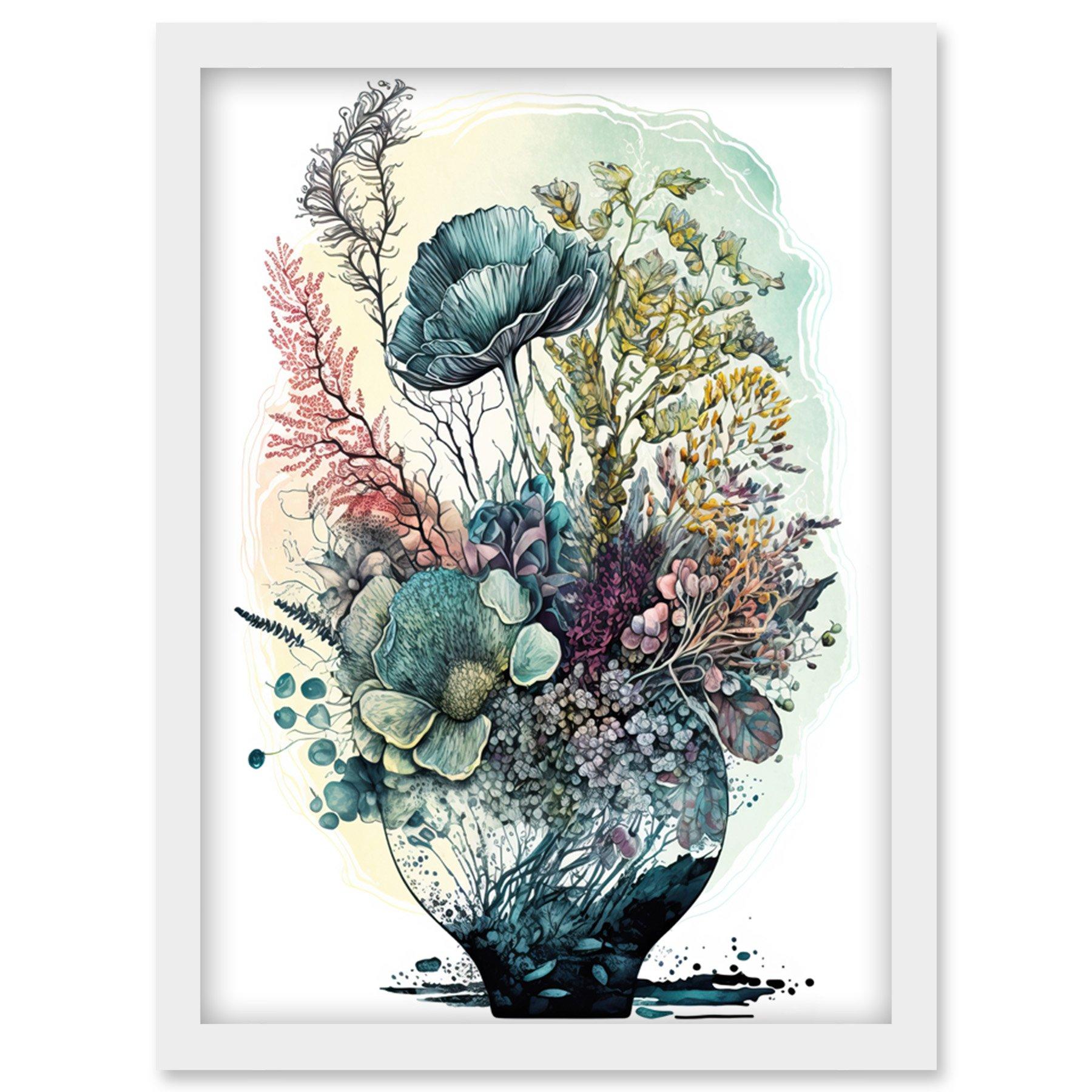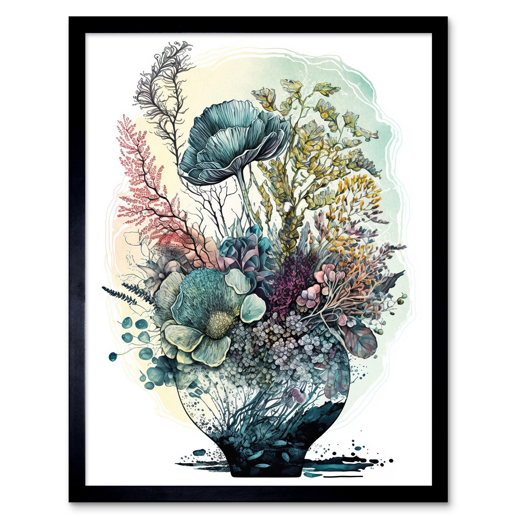 Spring Wildflowers Growing in a Glass Flower Pot Artwork Framed Wall Art Print A4