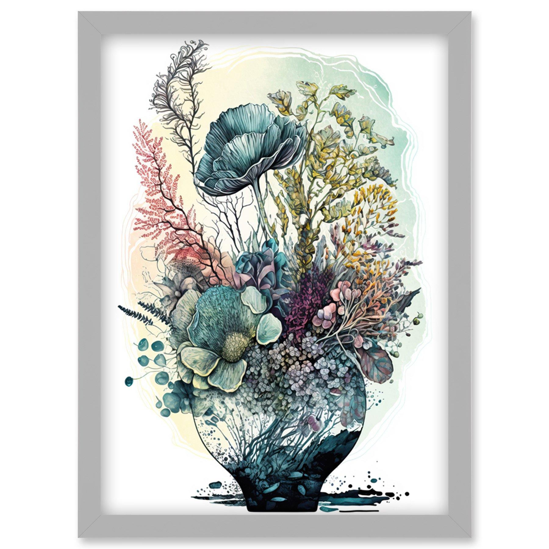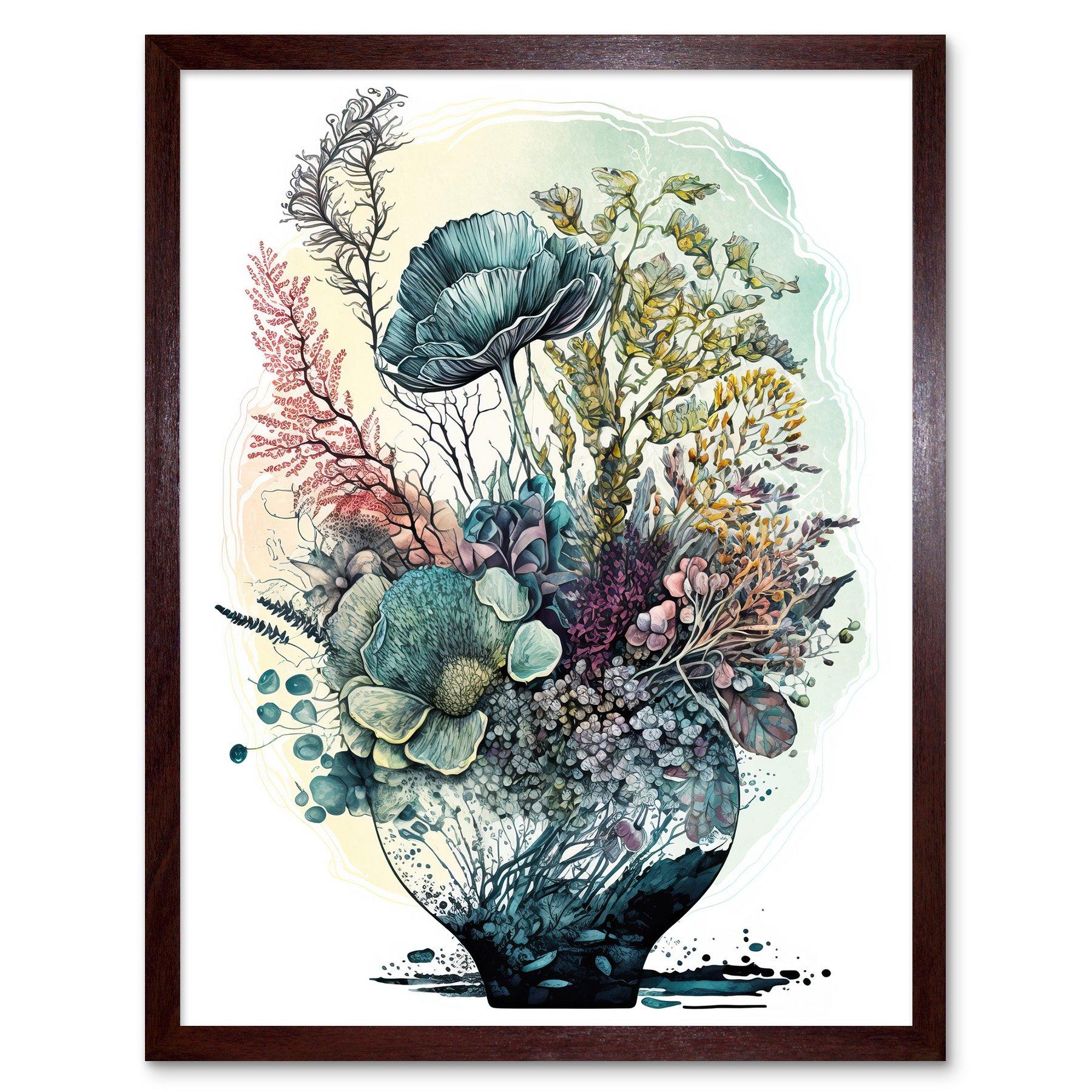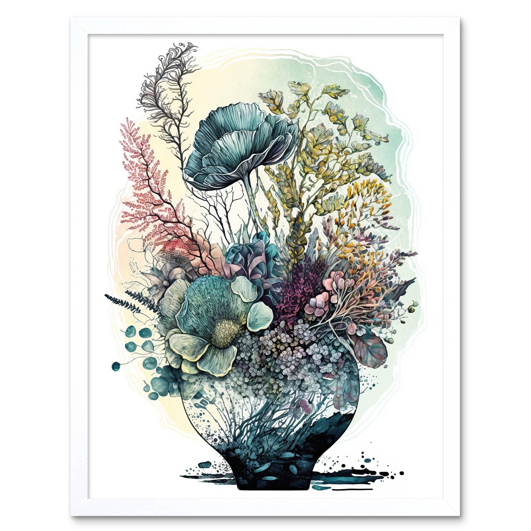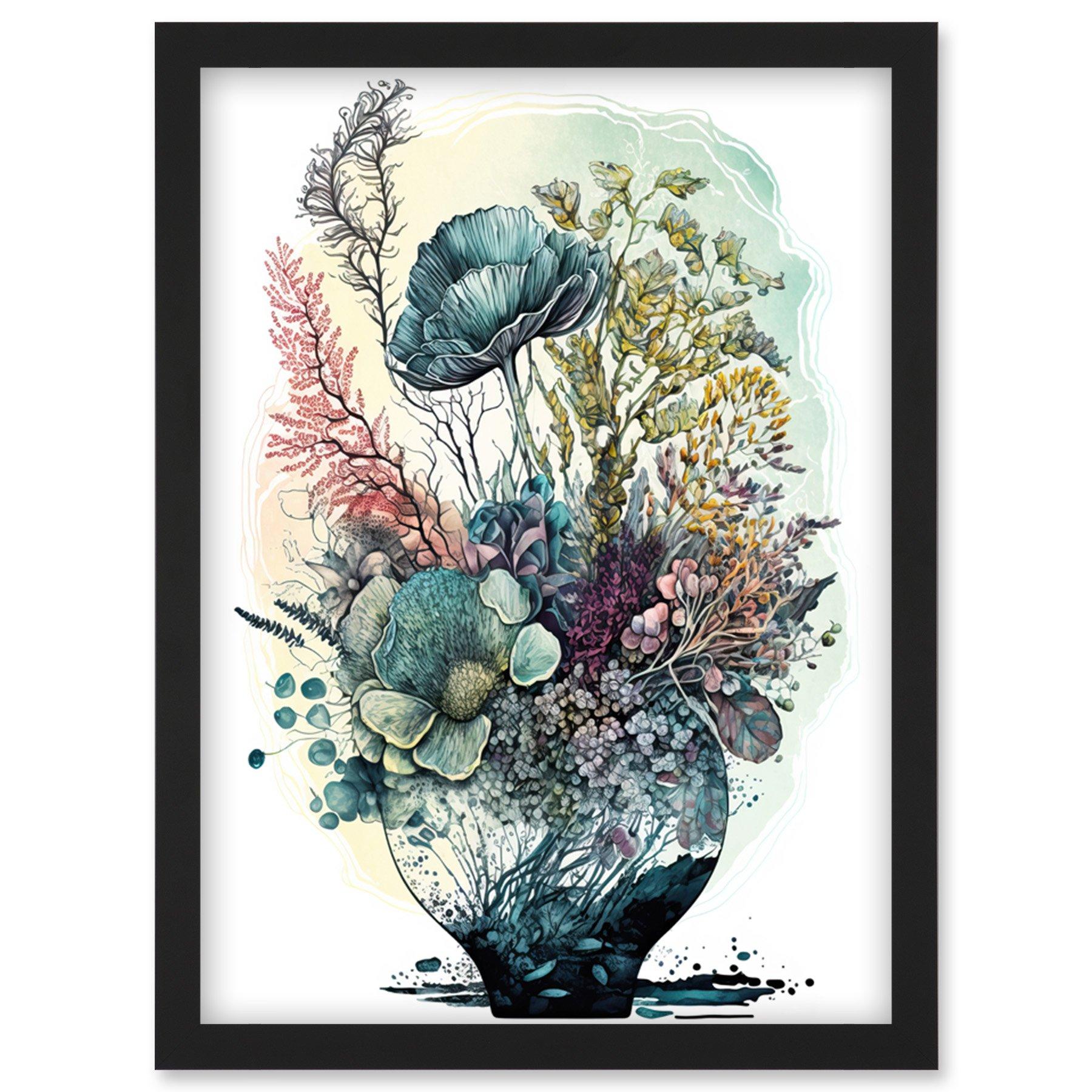 Spring Wildflowers Growing in a Glass Flower Pot Artwork Framed Wall Art Print A4