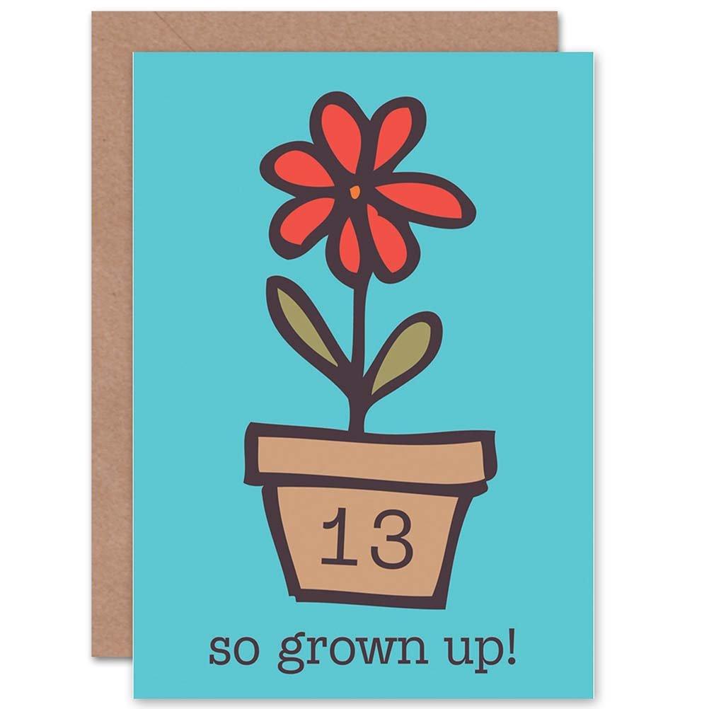 Birthday 13th Flower Pot Greetings Card Plus Envelope Blank inside