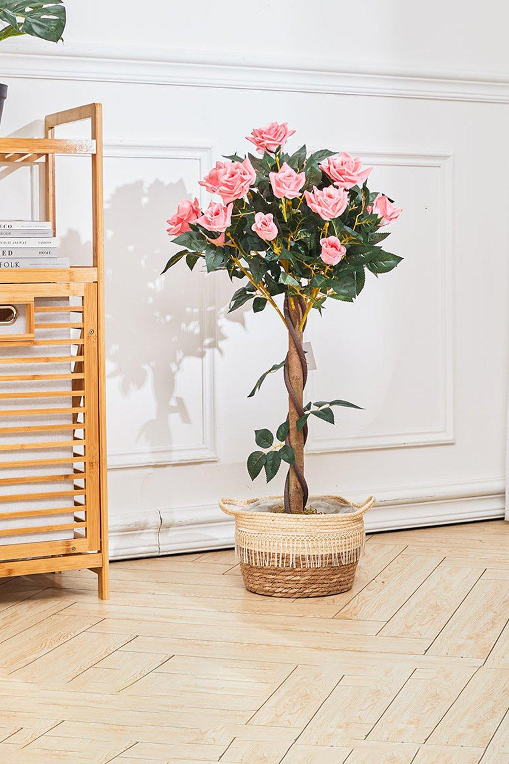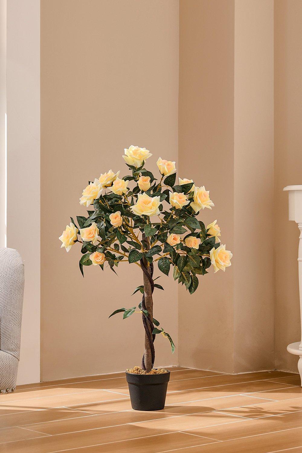 90cm Yellow Artificial Rose Flower Tree in Pot for Decoration