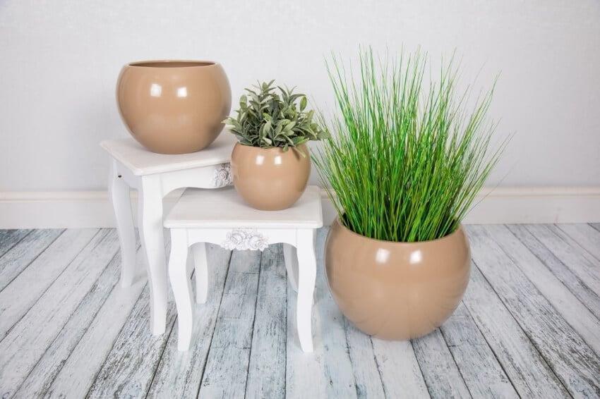 Epoxi Round Beige Semi Gloss Home Décor Display Indoor Flower Plant Pot 24cm
