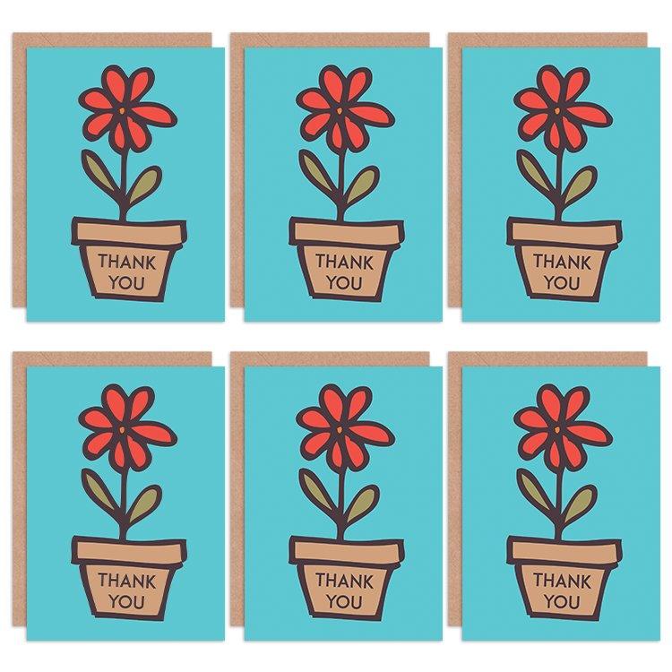 Thank You Cards - Flower Floral Pot Plant Set Blank Greeting Cards With Envelopes Pack of 6