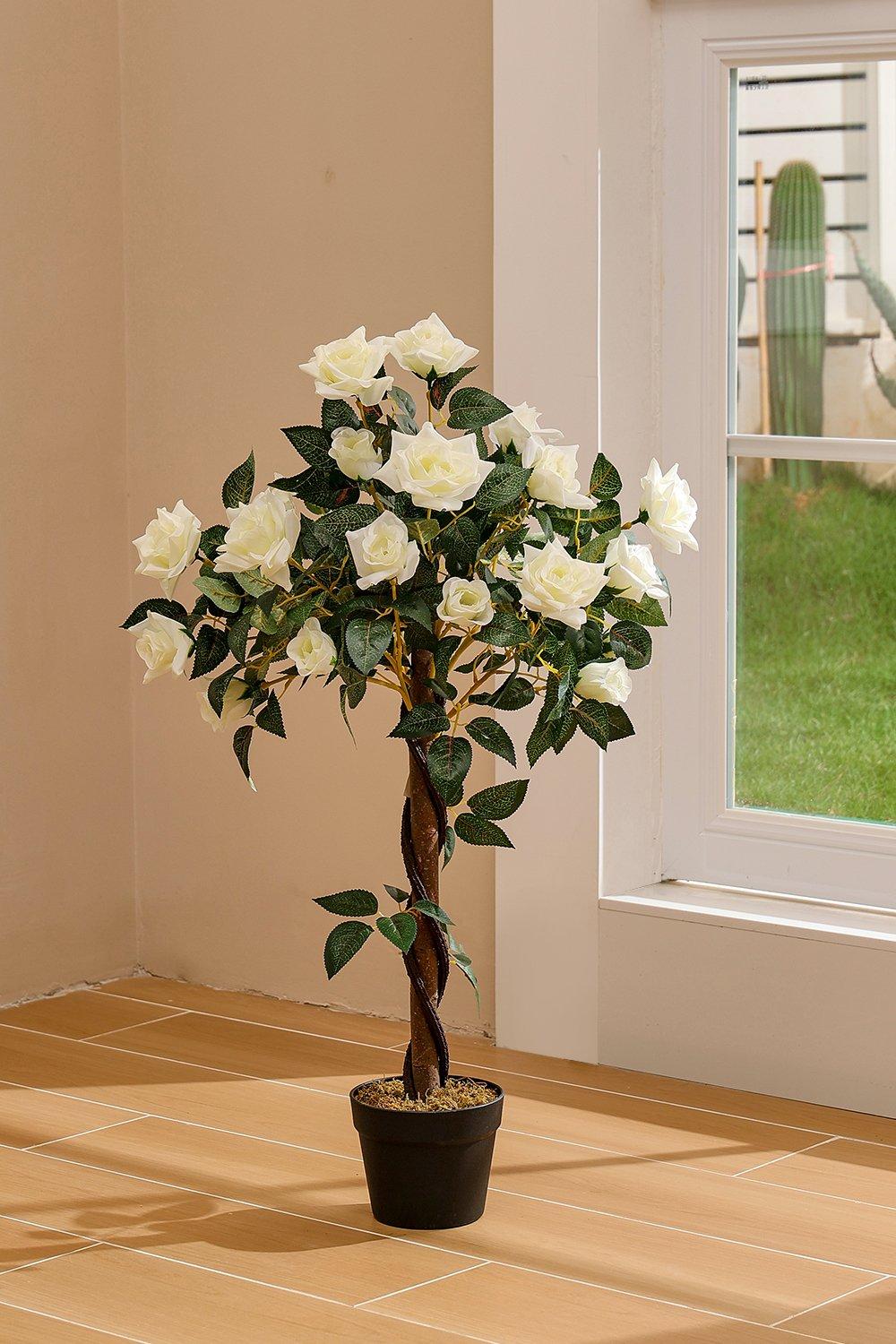 90cm White Artificial Rose Flower Tree in Pot for Decoration