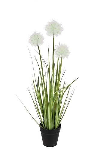 Flair Flower Dandelion in Pot Bush Branch Shore Decorative Flowers Artificial Bunch Fake tuft Solitaire Grass Indoor Green Plant, Polyester, plastic, White, 55 cm