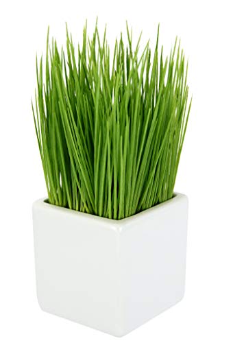 Flair Flower Pot Made of Ceramic, Green Plant, Artificial, Decorative Bush, Chives, Garden Herbs, Ornamental Grass, Plastic, 9x9x22 cm