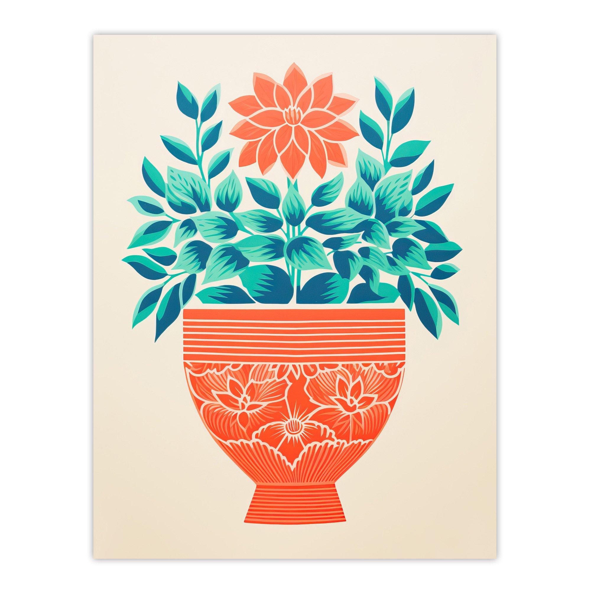 Ornate Coral Flower Pot Flowers Simple Bold Artwork Screen Print Vintage Unframed Wall Art Print Poster Home Decor Premium