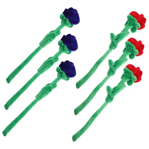 TOBBOMEY 6pcs Plush Roses Flower Bouquet with Bendable Stems Soft Flowers for Safe Play Valentines Day Gift for Girlfriend Wife