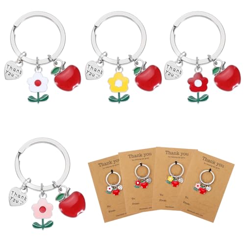 AOZUO 4Pcs Thank You Keychain, Thank You for Helping Me Grow Keychain, Appreciation Gifts Teacher Key Chain Thank You Gift Pink Flowers Keyring Christmas Valentines Day Teacher Gifts