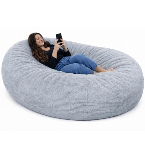 XeGe 5FT Giant Fluffy Bean Bag Chair Cover(No Filler), Ultra Soft Gray Faux Fur Stuffed Animal Storage Bean Bag, Plush Shaggy XL Large Beanbag for Living Room Bedroom Home Decor, Light Grey