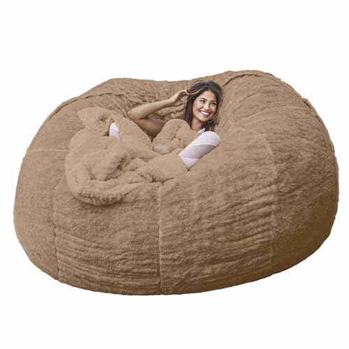 Giant Bean Bag Chair Cover(No Filler), Comfy Oversized Round Beanbag Chair, Big Round Soft Fluffy Faux Fur Bean Bag Lazy Sofa Bed Cover, for Living Room Bedroom Office (Brown, 6F)