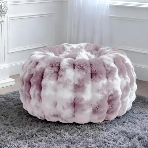 KBZSlyn Fluffy Bean Bag Chair Cover (No Filler) Faux Bunny Fur Pouf for Kids & Adults Washable Lazy Sofa Soft Lounge Corner Seat Home Accent Furniture Floor Seating(Beige,L-D100cm-empty cover)