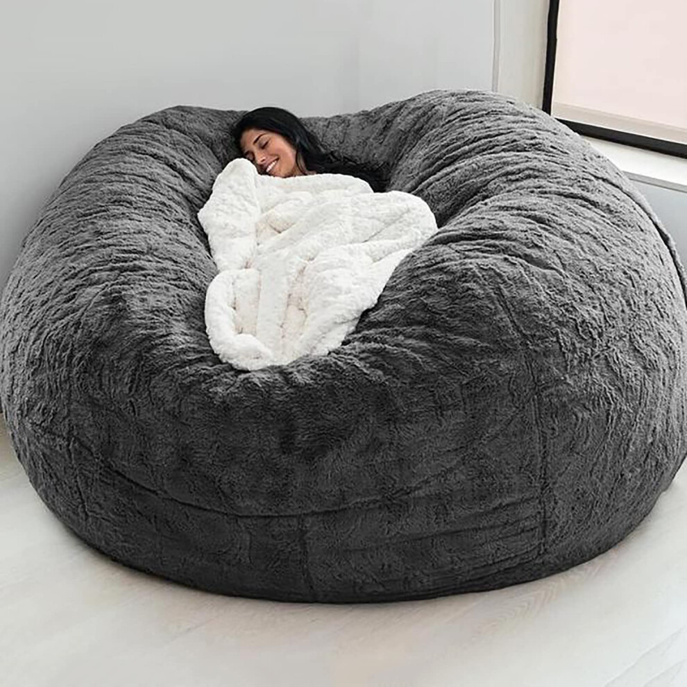 5/6/7ft Soft Fluffy Bean Bag Chair Cover Fits 5ft 6ft 7ft Bean Bags No Filler Round Bean Bag Cover