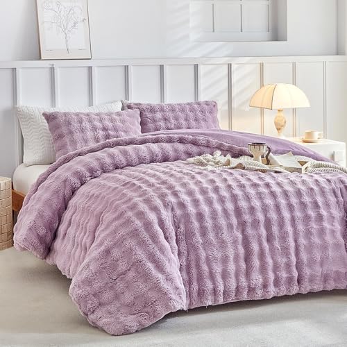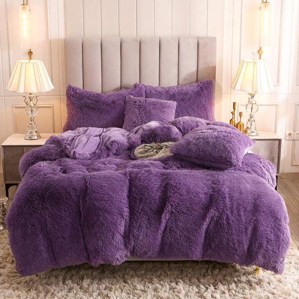Lekesky Fluffy King Size Duvet Cover Sets Fluffy Bedding - Shaggy Faux Fur Bedding Sets King Size (1x Quilt Cover + 2x Pillowcases) Soft Warm Teddy Fleece Duvet Set 200x200 cm, Lavender