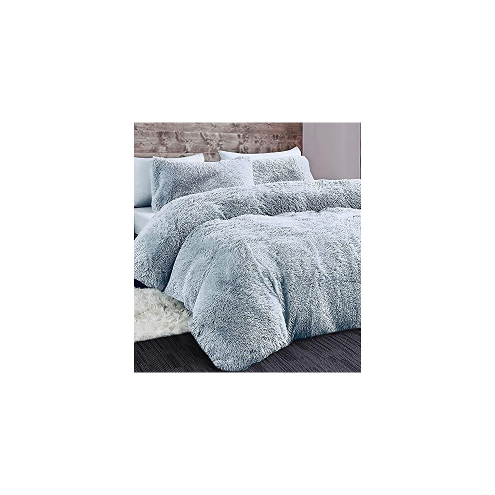 GC GAVENO CAVAILIA Shaggy Faux Fur Bedding Set King Size Luxury Fleece Hug & Snug Fluffy Duvet Cover with Matching Pillowcases - Easy Care Warm & Cosy Plush Fleece Quilt Cover, Silver