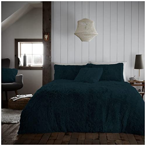 GC GAVENO CAVAILIA Fluffy Teddy Fleece Duvet Cover Set King Size – Cuddly Soft Bedding with Matching Pillowcases | Warm Comfortable Fluffy Quilt Cover Bed Set Perfect for Winter Season, Navy