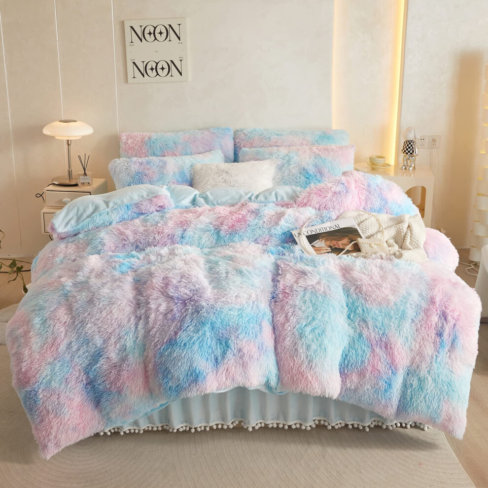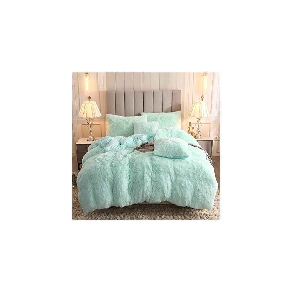 Uhamho Faux Fur Velvet Fluffy Bedding Duvet cover Set Down comforter Quilt cover with Pillow Shams Ultra Soft Warm and Durable King Aqua