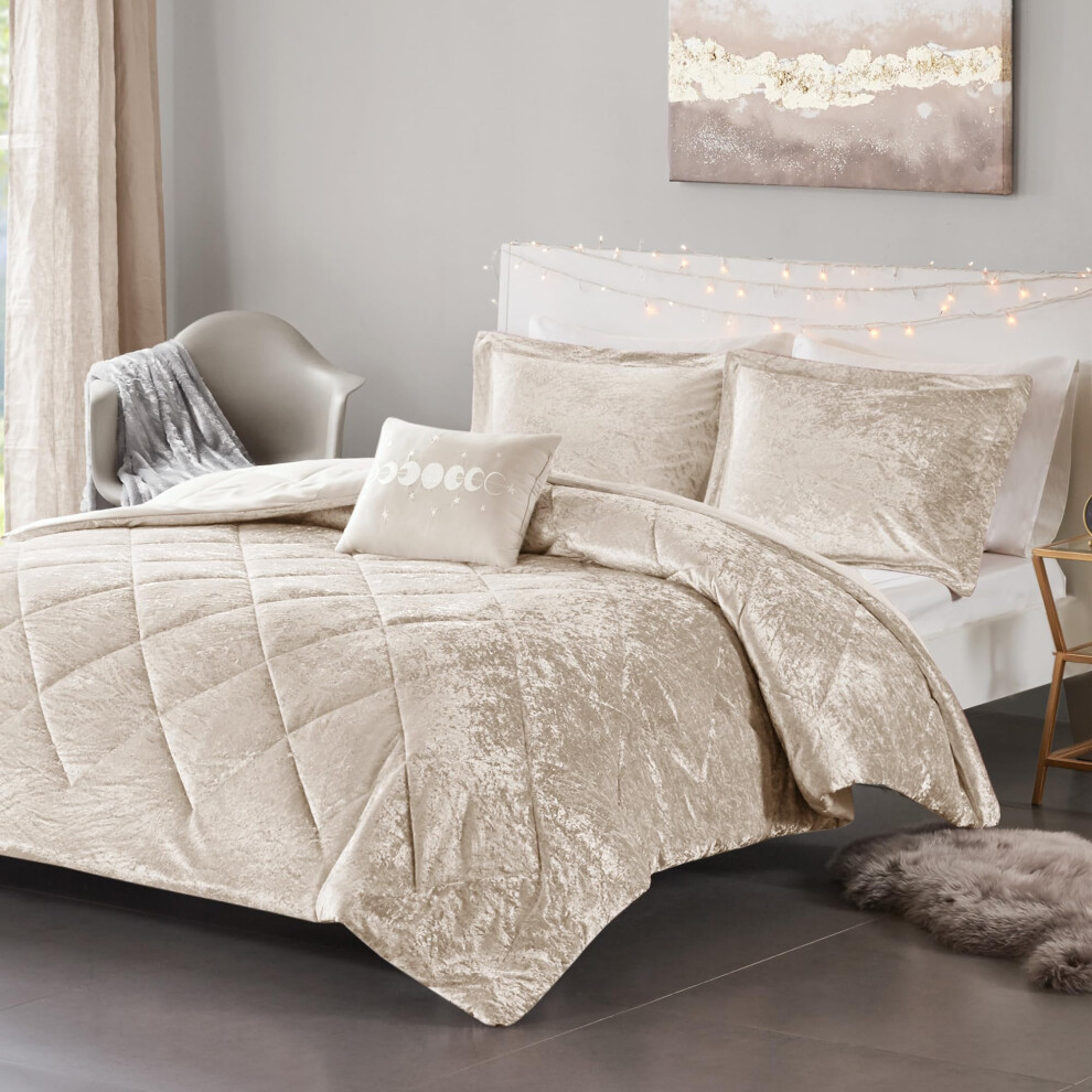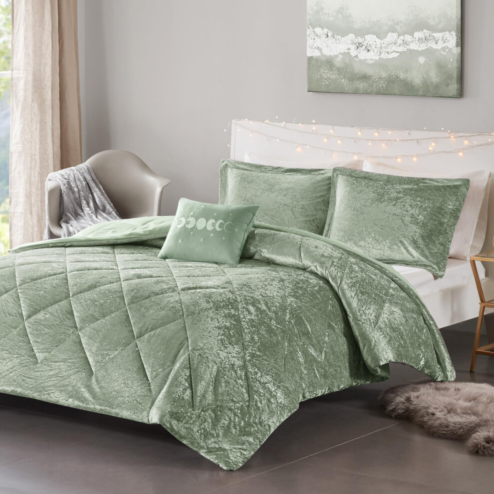 Intelligent Design Twin Duvet Cover Set Velvet Twin Duvet Set Luxury Diamond Quilting Lustrous Duvet Cover Fluffy Duvet Cover Decor Pillow & 1 Sh