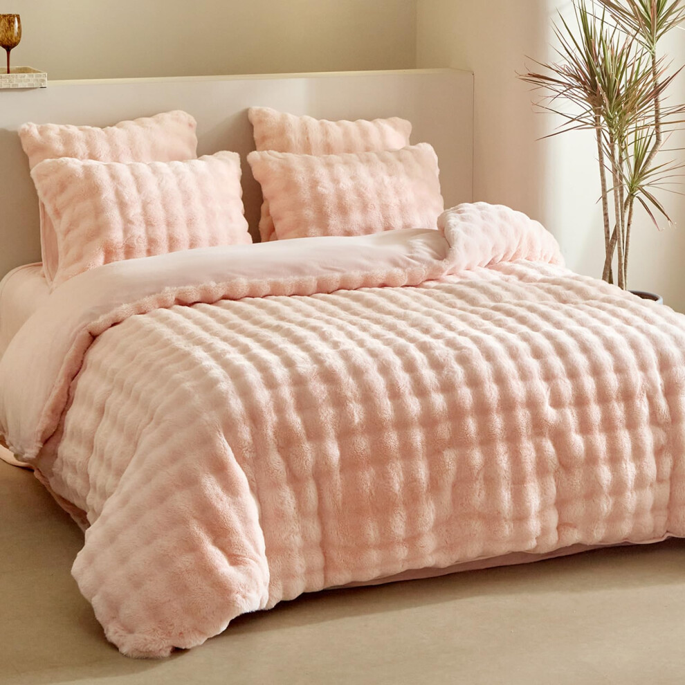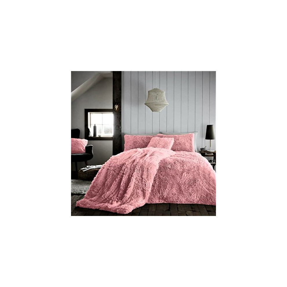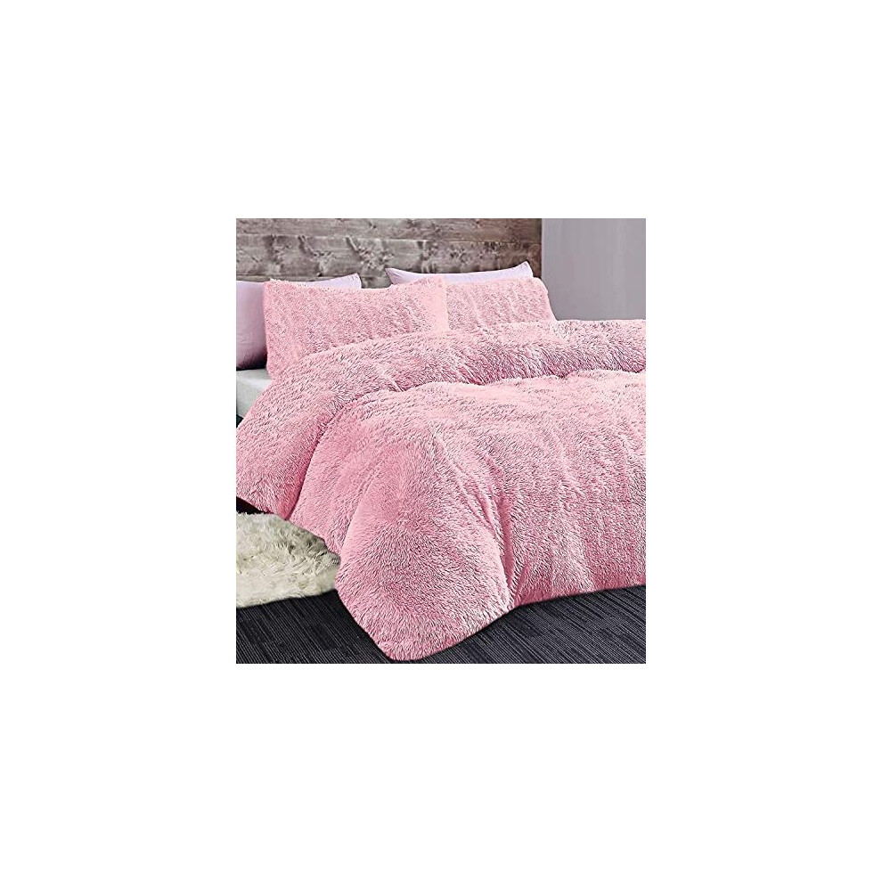CT Hug and Snug Luxury Fluffy Fur Fleece Duvet Cover Sets Super Soft Warm Cosy Bedding Sets (Blush Pink, King Duvet Set)
