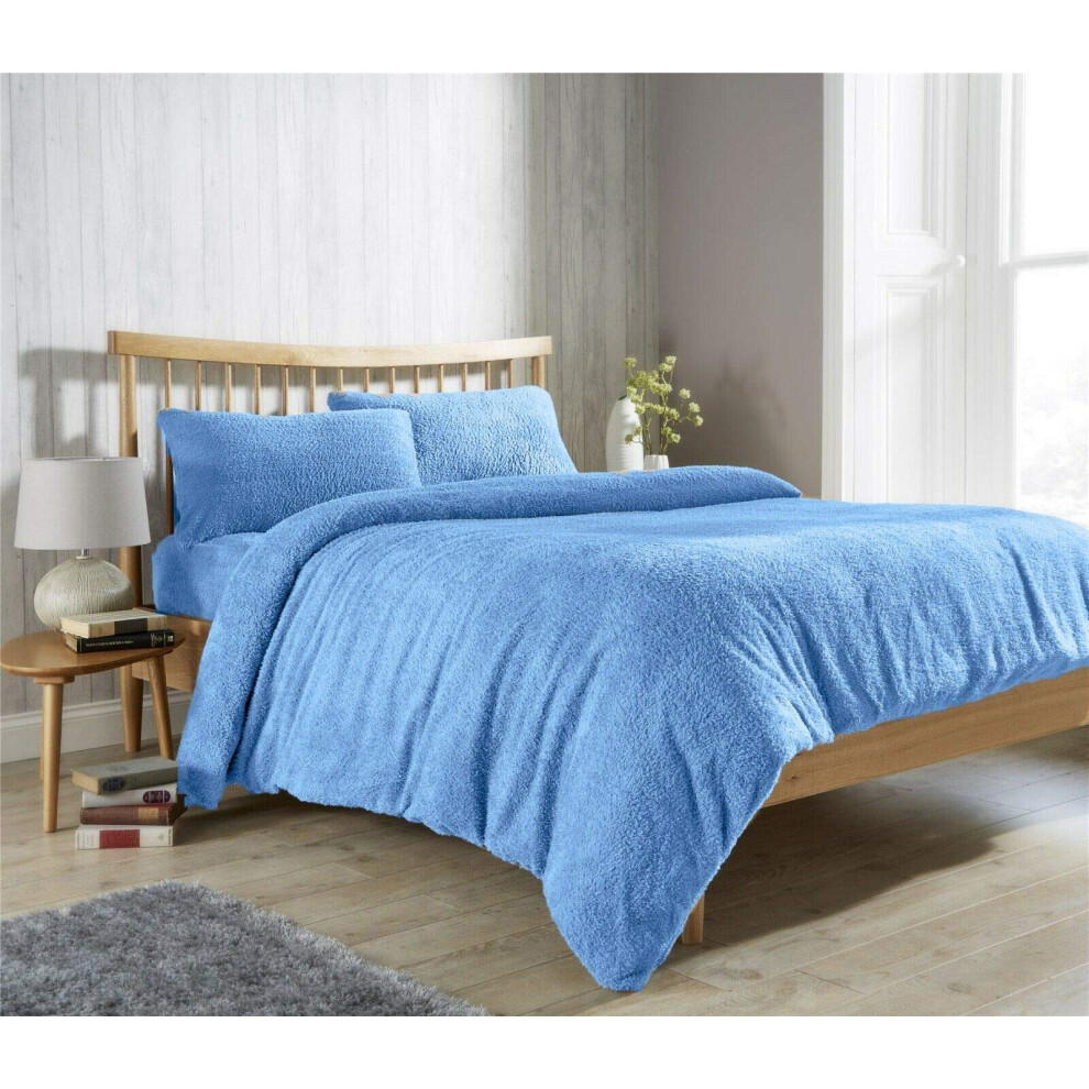 Rohi Blue Luxury Soft Teddy Fleece Duvet Cover Set ? Thermal Warm Fluffy Duvet Cover with Matching Pillow Cases ? Anti Allergy Teddy Bear Bedding,