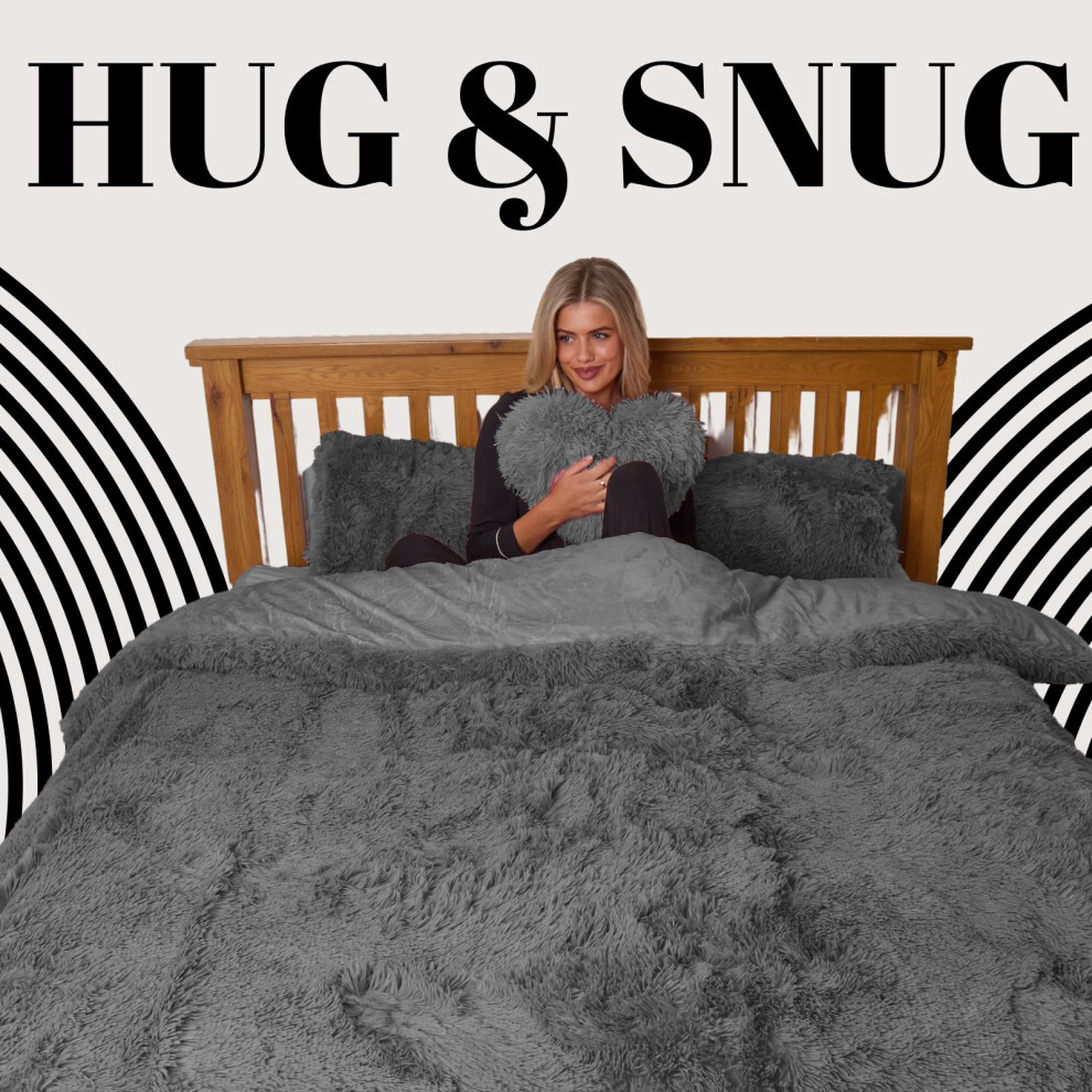 CT Hug and Snug Luxury Fluffy Fur Fleece Duvet Cover Sets Super Soft Warm Cosy Bedding Sets (Grey, King Duvet Set)