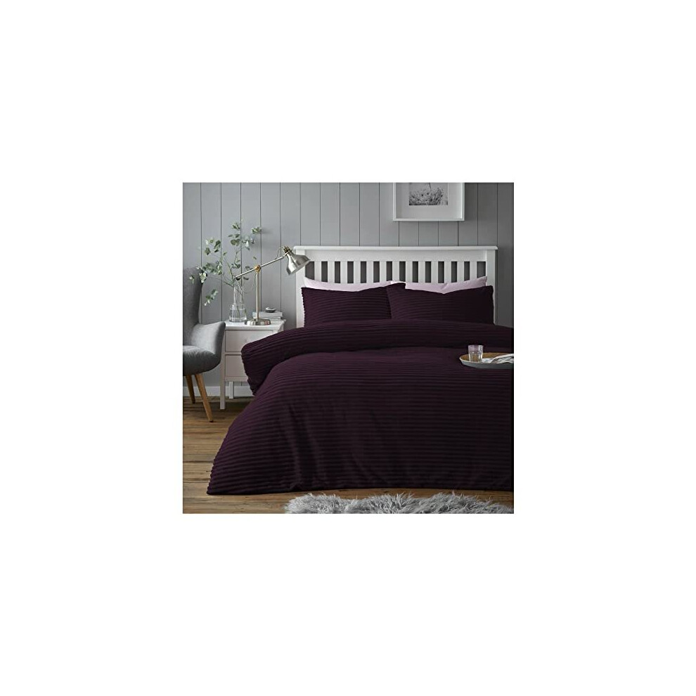 Lions Teddy Fleece Bedding - Ultra Soft Fluffy Single Duvet Cover Set with Pillowcase, Cuddly Thermal Warm Plain Quilt Covers, Chunky Rib, Purple,