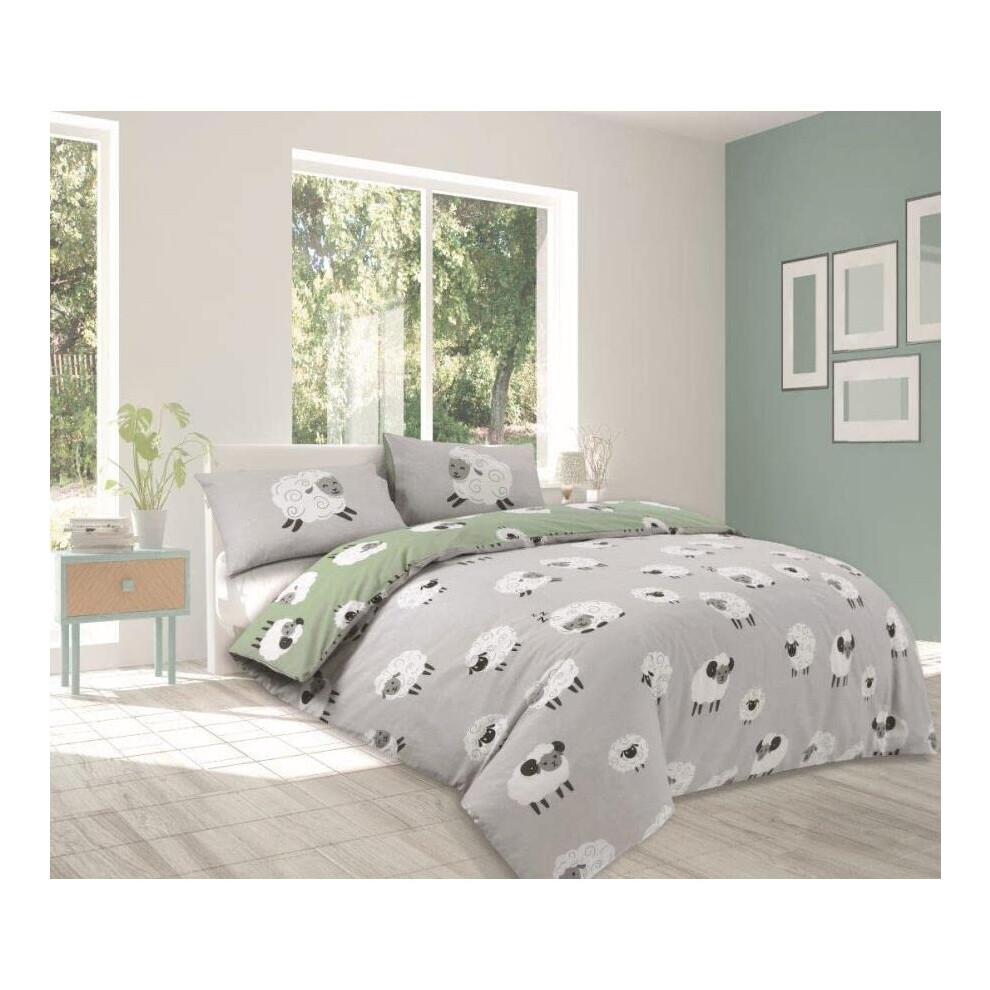 Grey Fluffy Sheep Single Duvet Cover Set Reversible PolyCotton Bedding (GREY, Single)