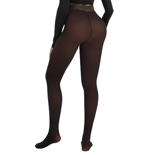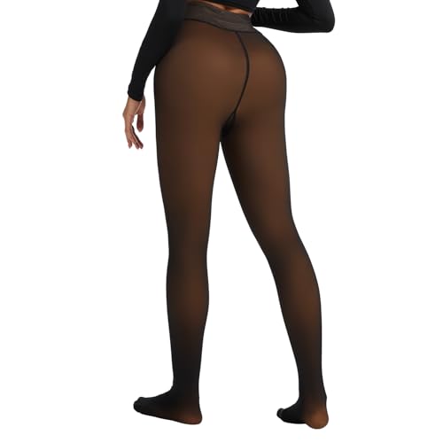 Fleece Lined Thermal Tights for Women, 230g Warm Fluffy Brown Tights skin colour that Look Sheer Winter Leggings Tummy Control Thick Stocking pantyhose