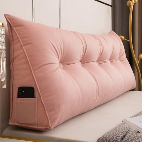 Technology Fabric Triangular Headboard Cushion/Pillow Large Reading Pillows Sofa Bed Back Lumbar Support Cushion Soft Fluffy Bolster Backrest Support Cushion for Books Or Gaming(120x50x20cm,Pink)