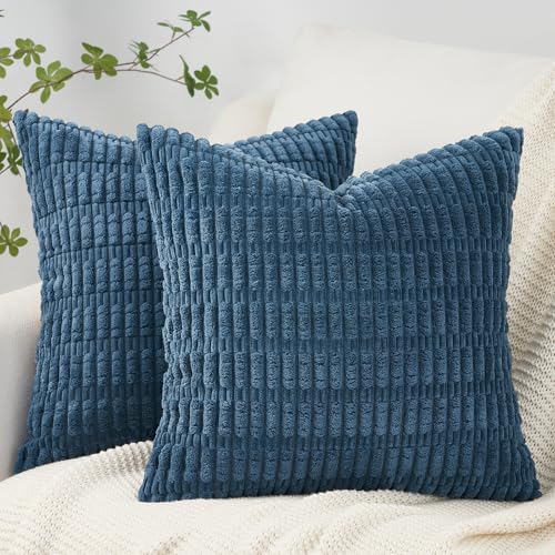 Topfinel Blue Cushion Covers 45cm x 45cm,Corduroy Decorative Fluffy Pillows Cases,Cushions Cover 18x18 inches with Invisible Zipper for Sofa Bed Livingroom Bedroom,Pack of 2