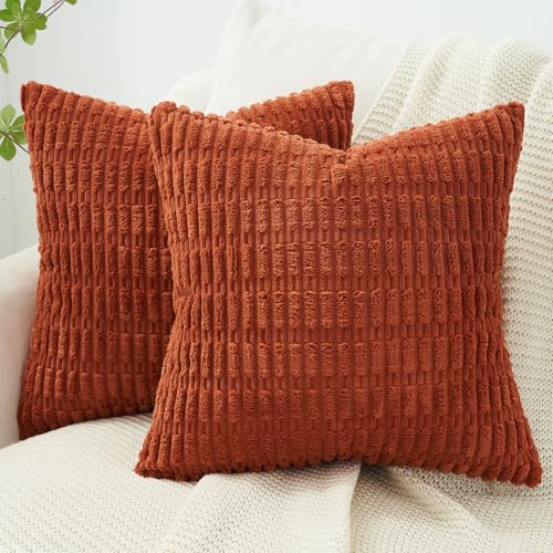 Topfinel Burnt Orange Cushion Covers 50cm x 50cm,Corduroy Decorative Fluffy Pillows Cases,Cushions Cover 20x20 inches with Invisible Zipper for Sofa Bed Livingroom Bedroom,Pack of 2