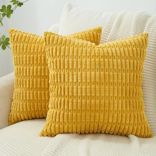 Topfinel Mustard Yellow Cushion Covers 50cm x 50cm,Corduroy Decorative Fluffy Pillows Cases,Cushions Cover 20x20 inches with Invisible Zipper for Sofa Bed Livingroom Bedroom,Pack of 2