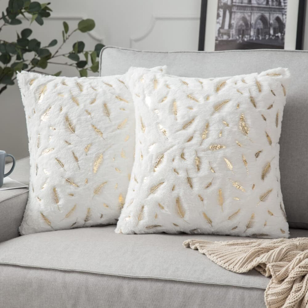 Topfinel Cream Cushion Covers 40cm x 40cm,Scatter Autumn Decorative Fluffy Pillows Cases,Cushions Cover 16x16 inches with Invisible Zipper for Sofa Bed Livingroom Bedroom,Pack of 2
