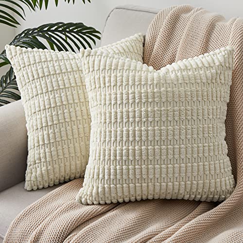 Topfinel Cream Cushion Covers 45 x 45, Corduroy Decorative Fluffy Pillows Cases, Cushions Covers 18x18 inches with Invisible Zipper for Sofa Bed Livingroom Bedroom, Pack of 2