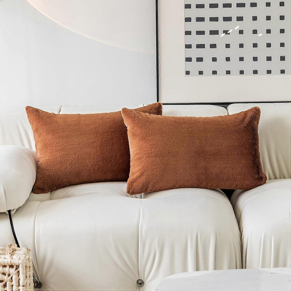 (As show, One size) Pillow Covers 12x20, Rectangle Fluffy Pillows Set of 2, Rust Lumbar Pillow Cover for Sofa Bed Patio, 12x20 inch, Brown