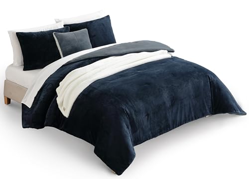 UGG Remina Comforter Set 5 Piece Bed in a Bag with Throw Blanket, Decorative Pillow, Shams, and Reversible Comforter Hypoallergenic Washable Luxury Warm Fluffy Bedding Set, Full/Queen, Navy Blue