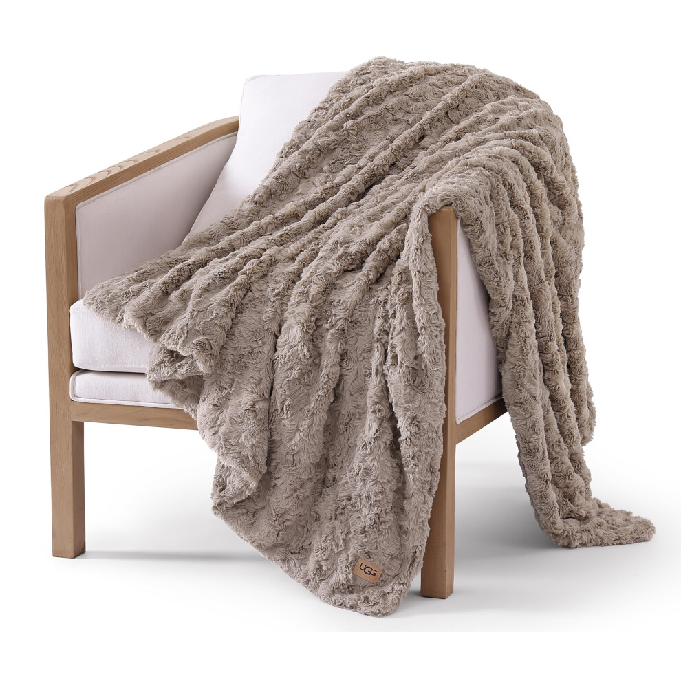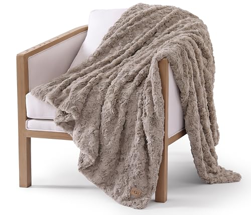 UGG 10483 Adalee Soft Faux Fur Reversible Accent Throw Blanket Luxury Cozy Fluffy Fuzzy Hotel Style Boho Home Decor Soft Luxurious Comfy Blankets for Couch, 70 x 50-Inch, Natural