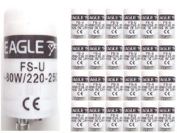 25 X FLUORESCENT LIGHT TUBE 2 3 4 5 6 FOOT FSU STARTER STARTERS 4W - 80W