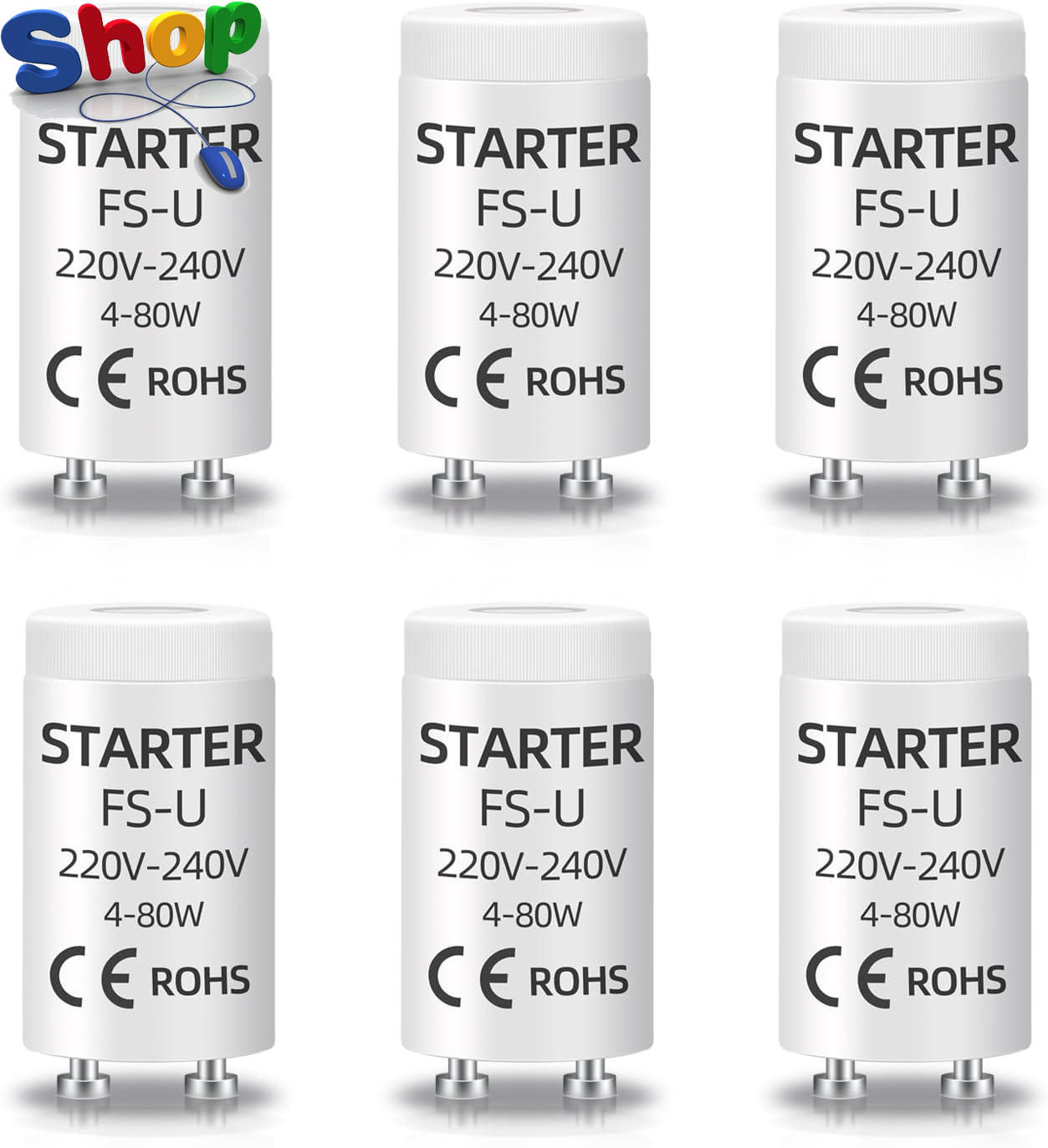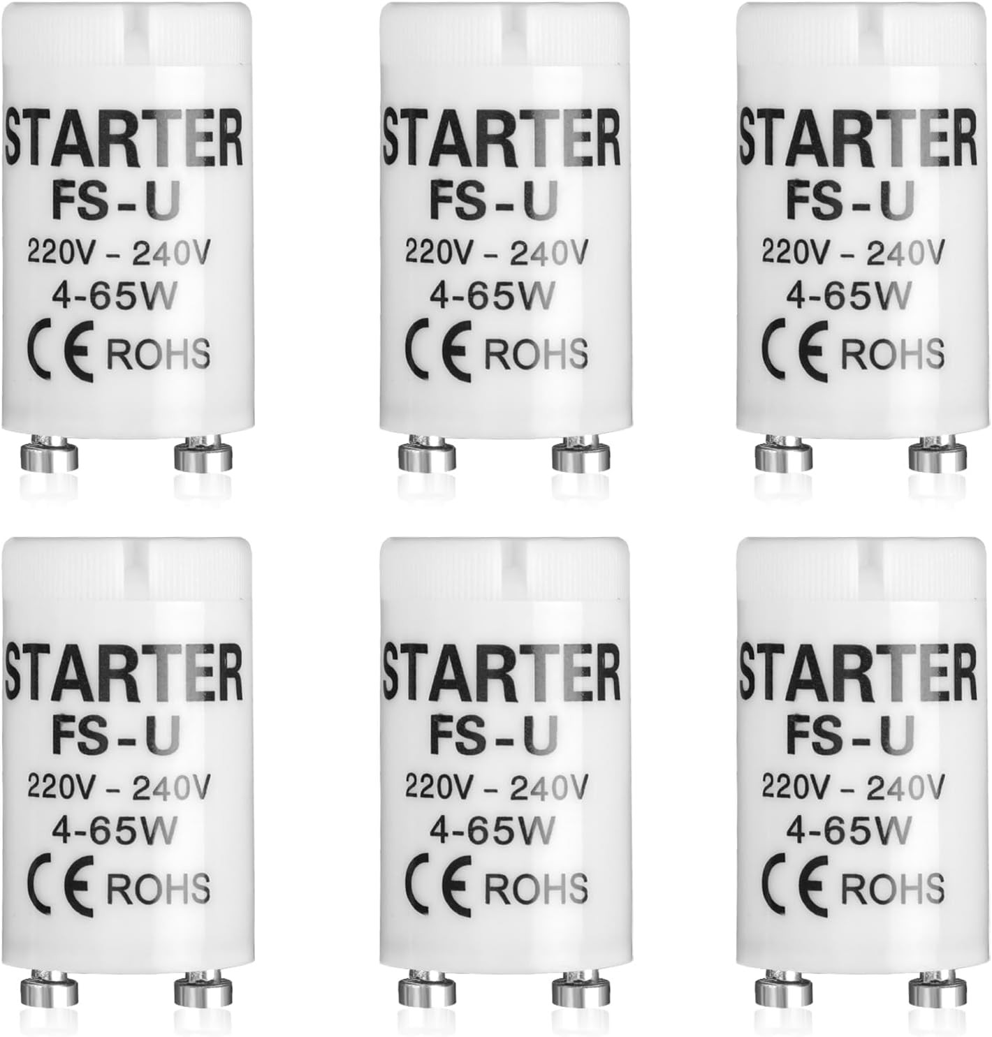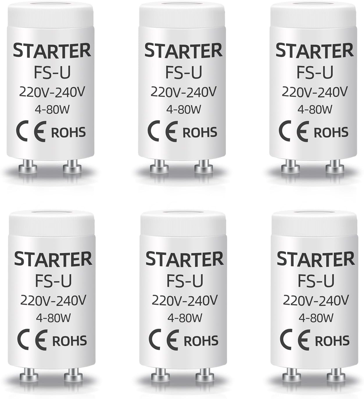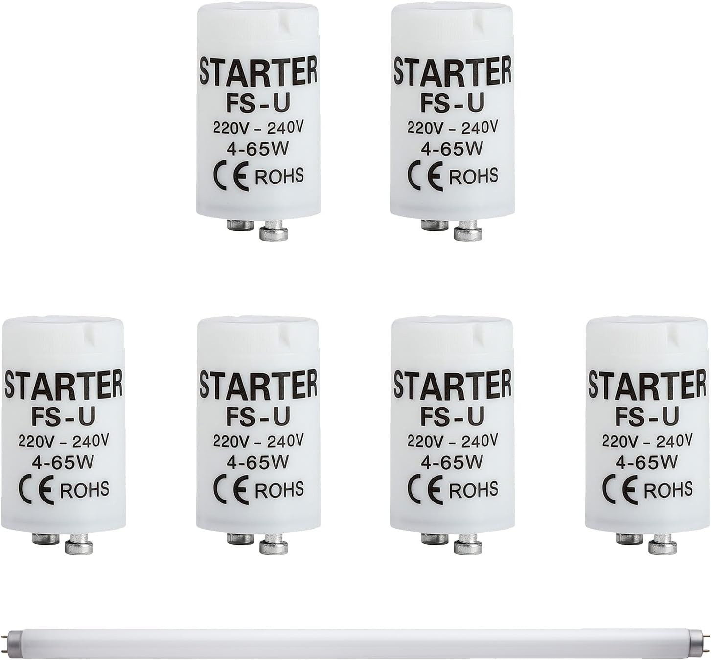 6 Pcs FSU Starter 4-65w 220v-240v, Starter for Fluorescent Light Tube with Cond