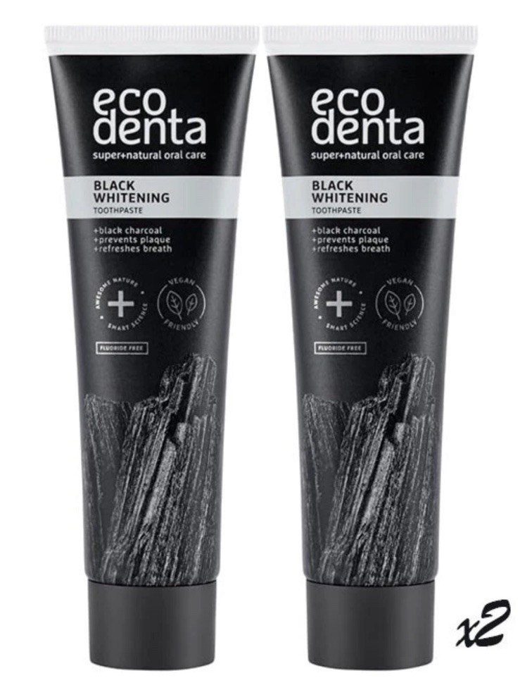 2 x Fluoride Free Toothpaste – Ecodenta Charcoal Whitening 100ml Vegan