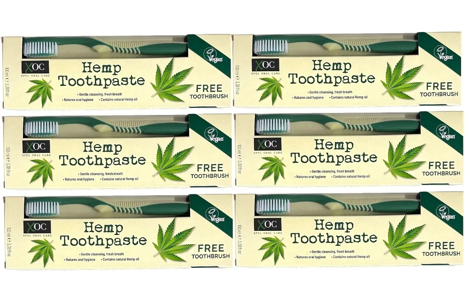 6x HEMP TOOTHPASTE & 6x TOOTHBRUSHES Hemp Fluoride Free Toothpaste XOC