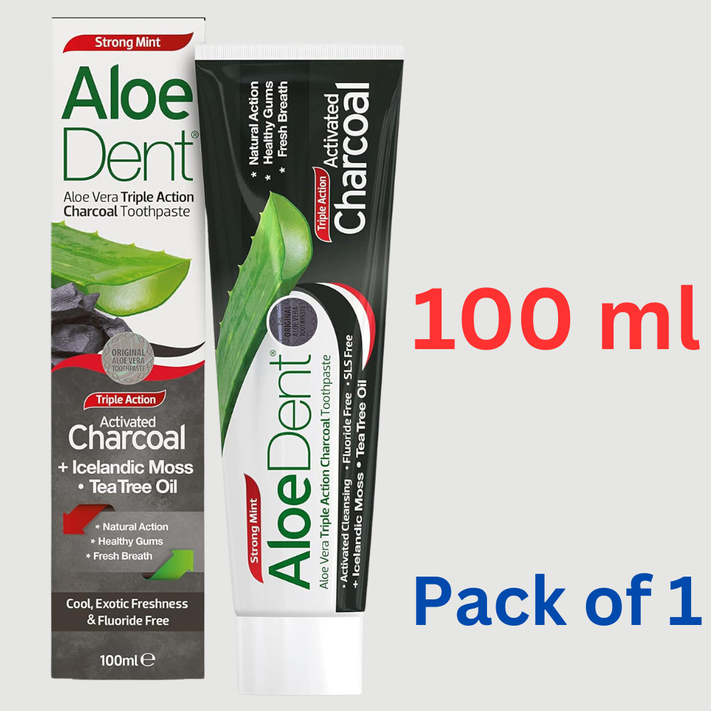 Aloe Dent Aloevera Triple Action Charcoal Fluoride Free Toothpaste Vegan 100ml