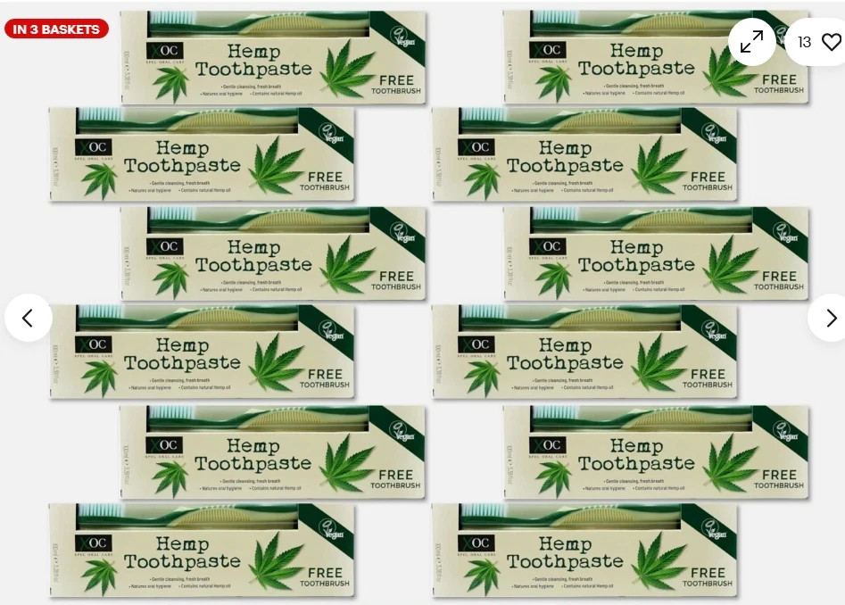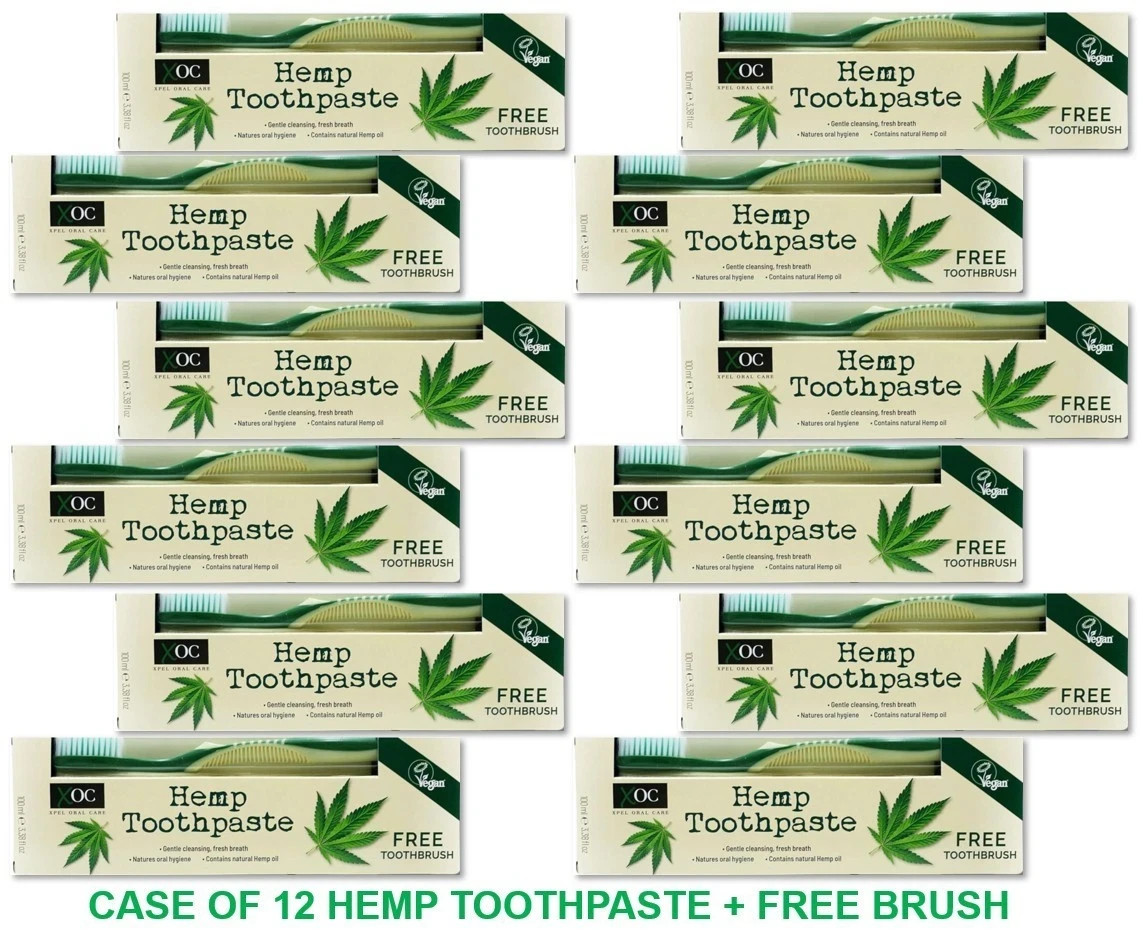 Case of 12 HEMP TOOTHPASTE + FREE TOOTHBRUSHES Hemp Fluoride Free Toothpaste XOC