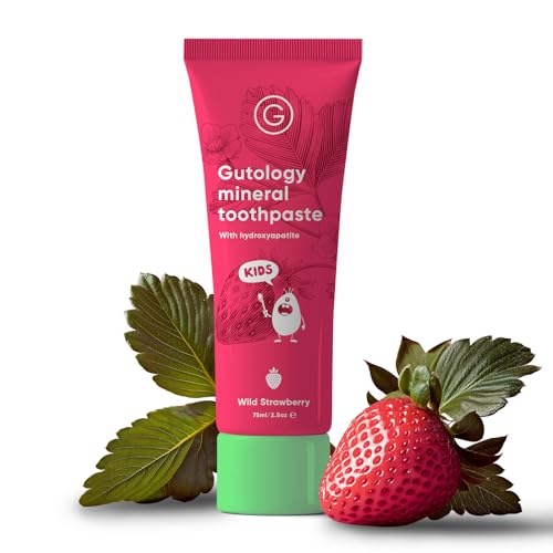 Gutology Kids Hydroxyapatite Mineral Toothpaste 75ml Fluoride Free Toothpaste Microbiome Friendly Suitable for Sensitive Teeth & Children - Wild Strawberry Flavour