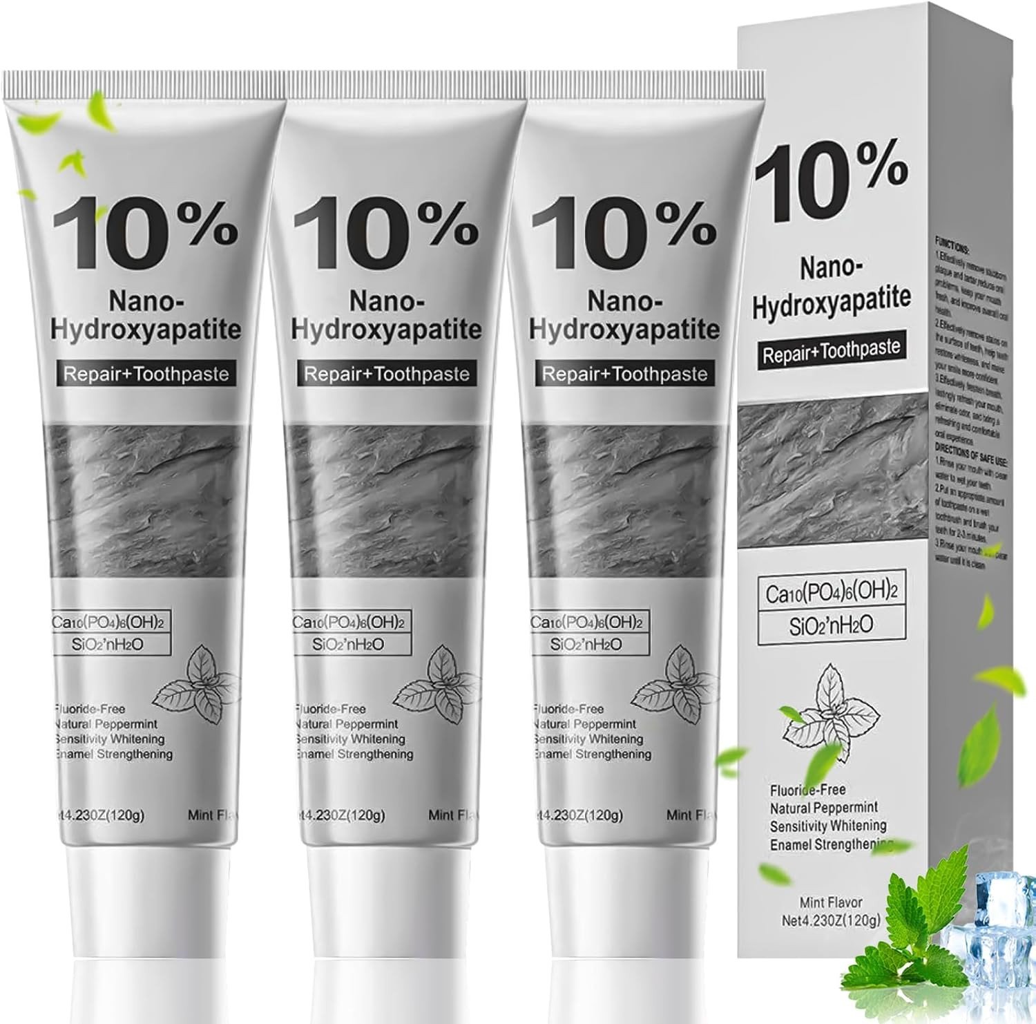 3Pcs 10% Hydroxyapatite Toothpaste, Fluoride Free Enamel Care Toothpaste, Nano H