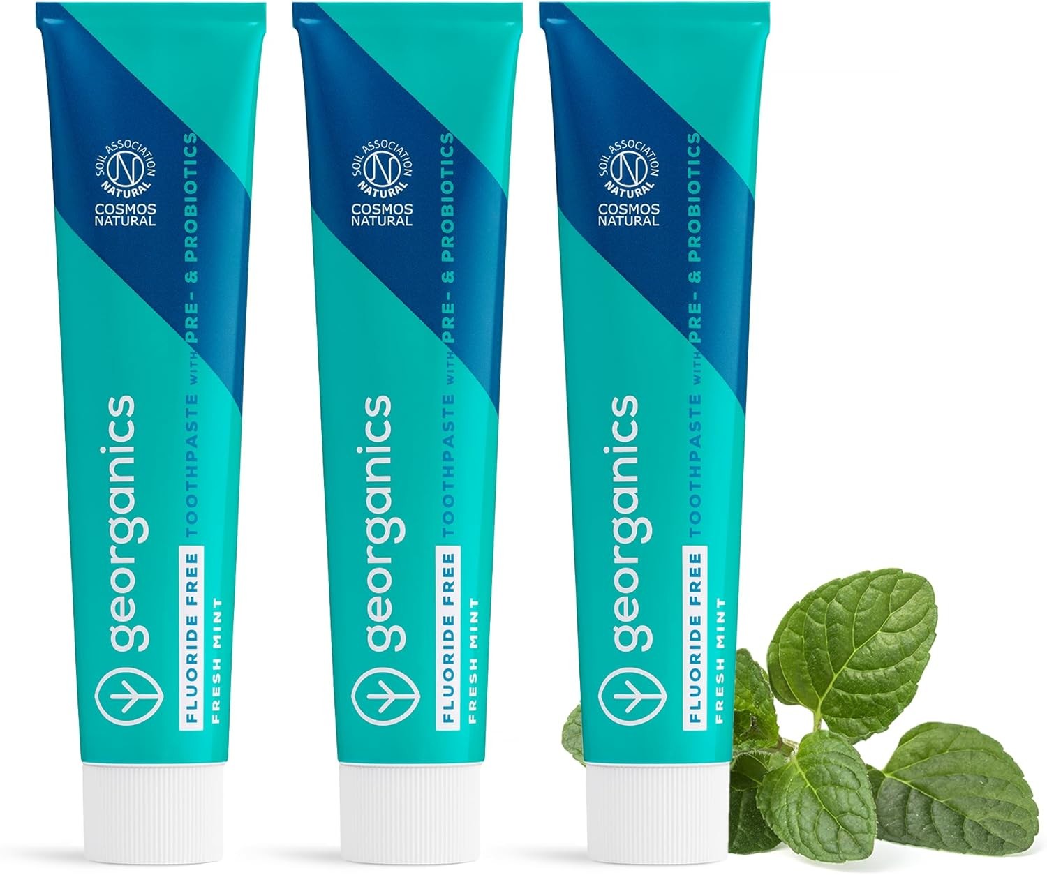 Georganics Natural Fluoride Free Probiotic Toothpaste - 3x75ml - Mint Flavour -