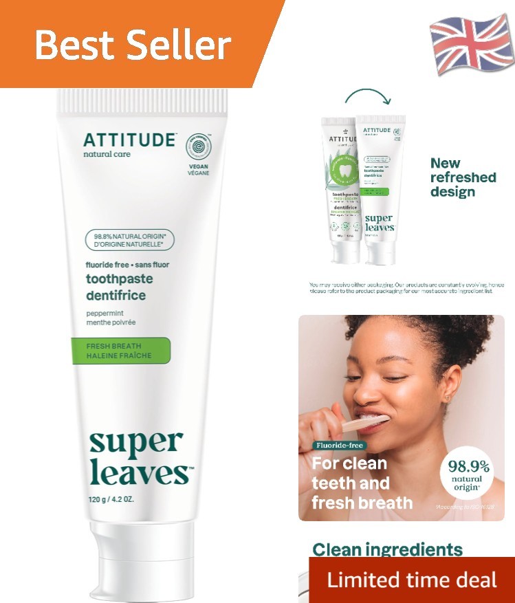 ATTITUDE Fluoride-Free Whitening Toothpaste, Peppermint Flavor, Vegan & Cruelty