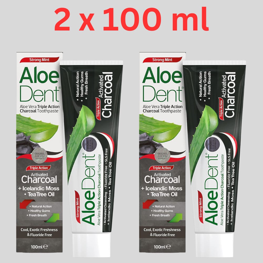 Aloe Dent Aloe vera Triple Action Charcoal Fluoride Free Toothpaste - 100ml X 12