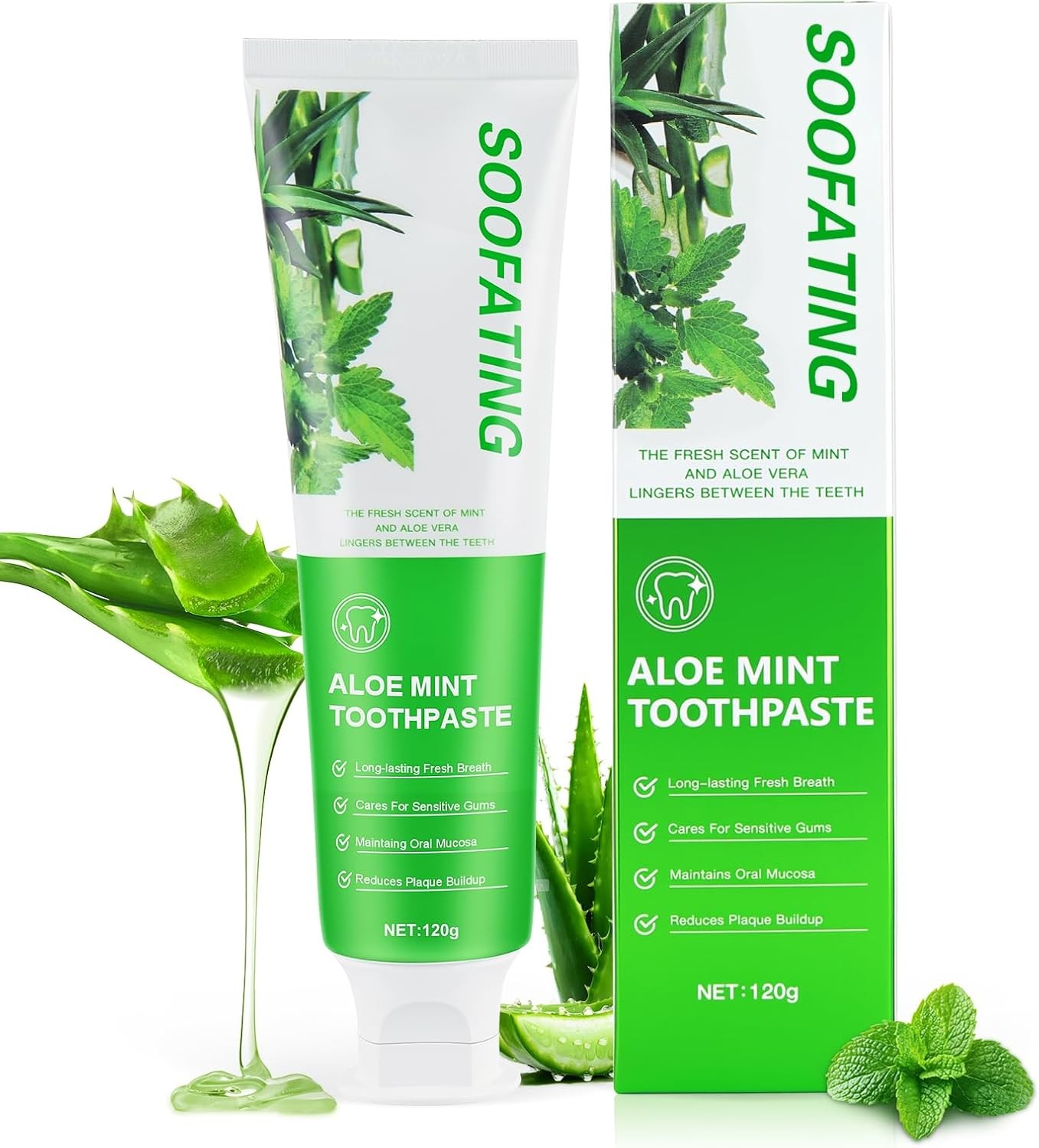OFFCUP Aloe Vera Mint Toothpaste, 120g Fluoride Free Whitening Toothpaste, Natu