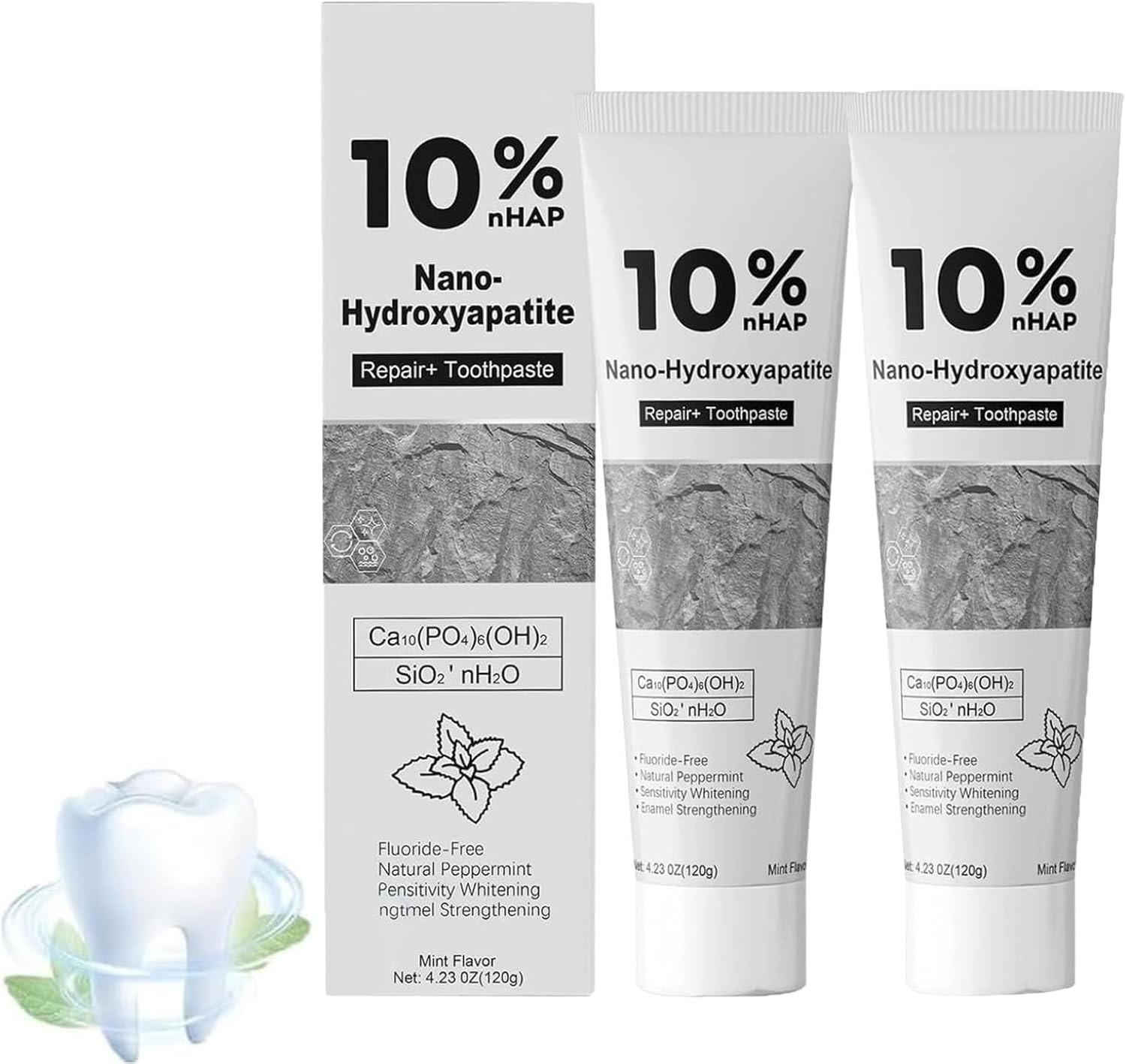 2 Pack 10% Hydroxyapatite Toothpaste,Natural Fluoride Free Toothpaste,Hydroxyap